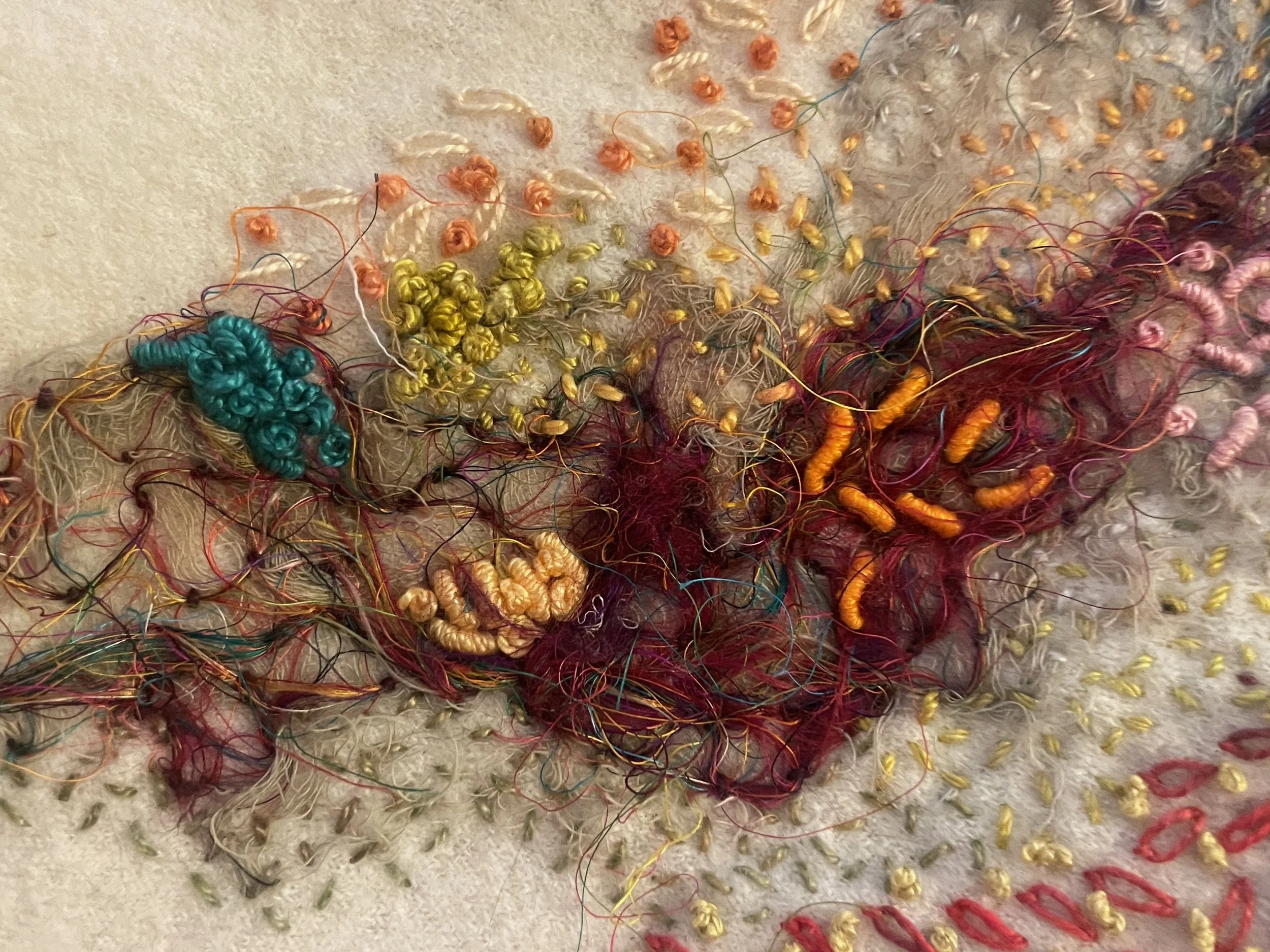 My current body of work represents five years of investigation, into crafting a tactile language response to my poetry. Primarily, I use feelings as an imaginative and exploratory tool to confront and untangle my subjective and structurally constructed behaviors and ways of thinking: thoughts and happenings that permeate my lived experiences as an ageing woman. My subject matter is drawn from the intricacies of the everyday.